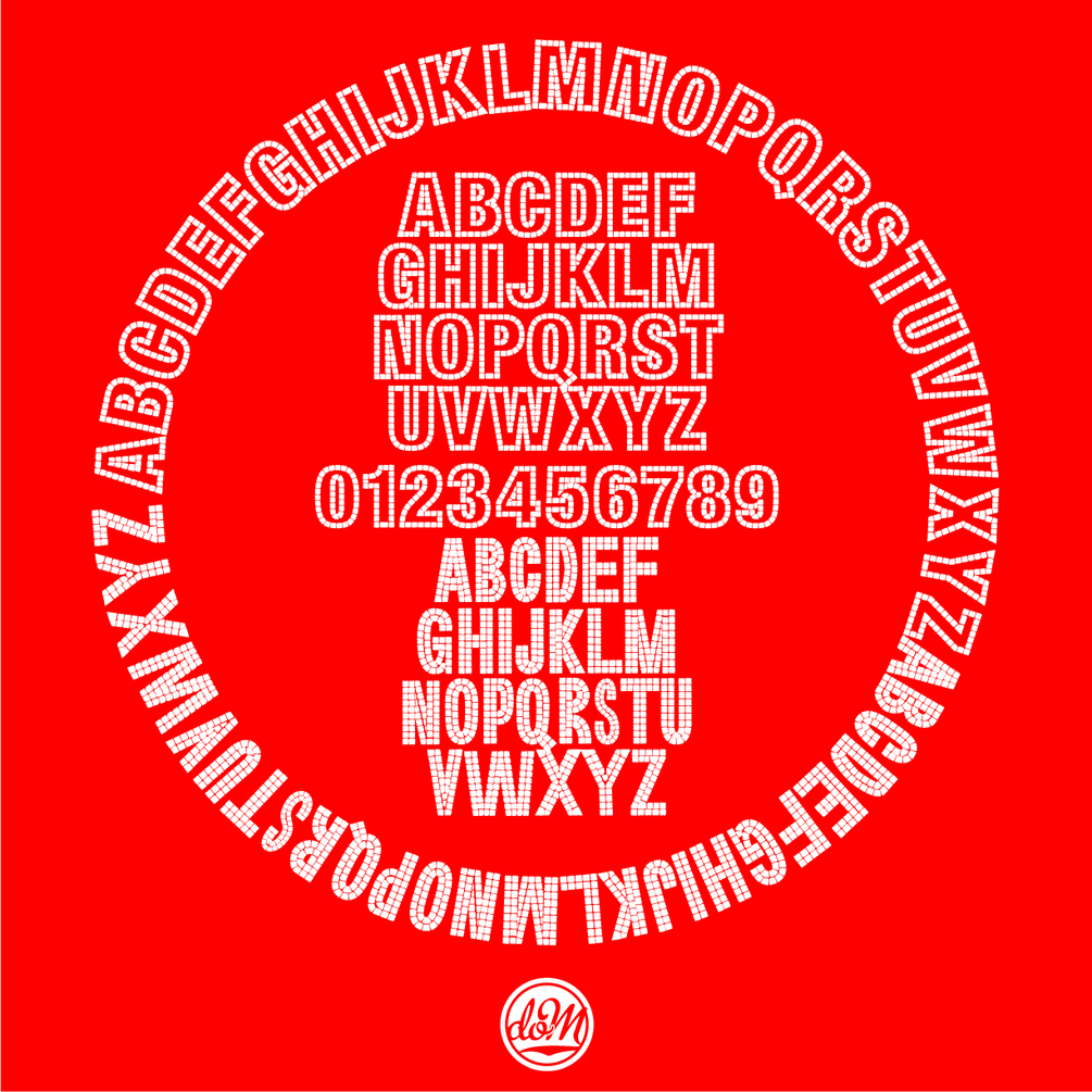 A Fauxsaic, or tiled, display font based on an earlier illustration from 2023 (https://designomatt.com/2024/01/28/fauxsaic-display/). It is a limited character display font suitable for decorative purposes and accents to your designs.